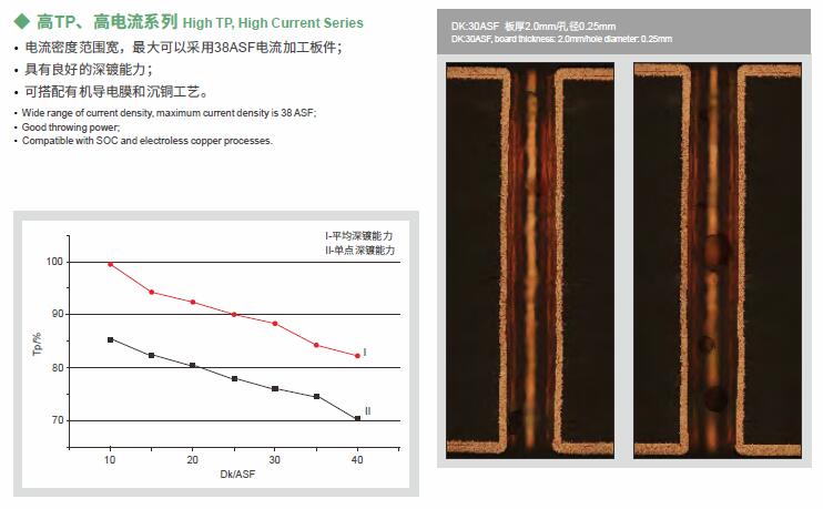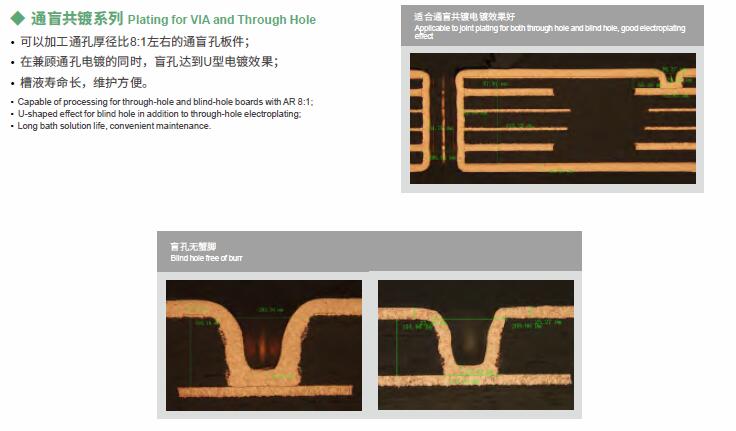 垂直连续电镀VCP是为垂直连续电镀设备而开发的酸性铜镀体系,适应多种板型的电镀需求,适用高电流密度的通孔电镀,兼顾沉铜及有机导电膜等直接电镀,适用通盲共镀。
